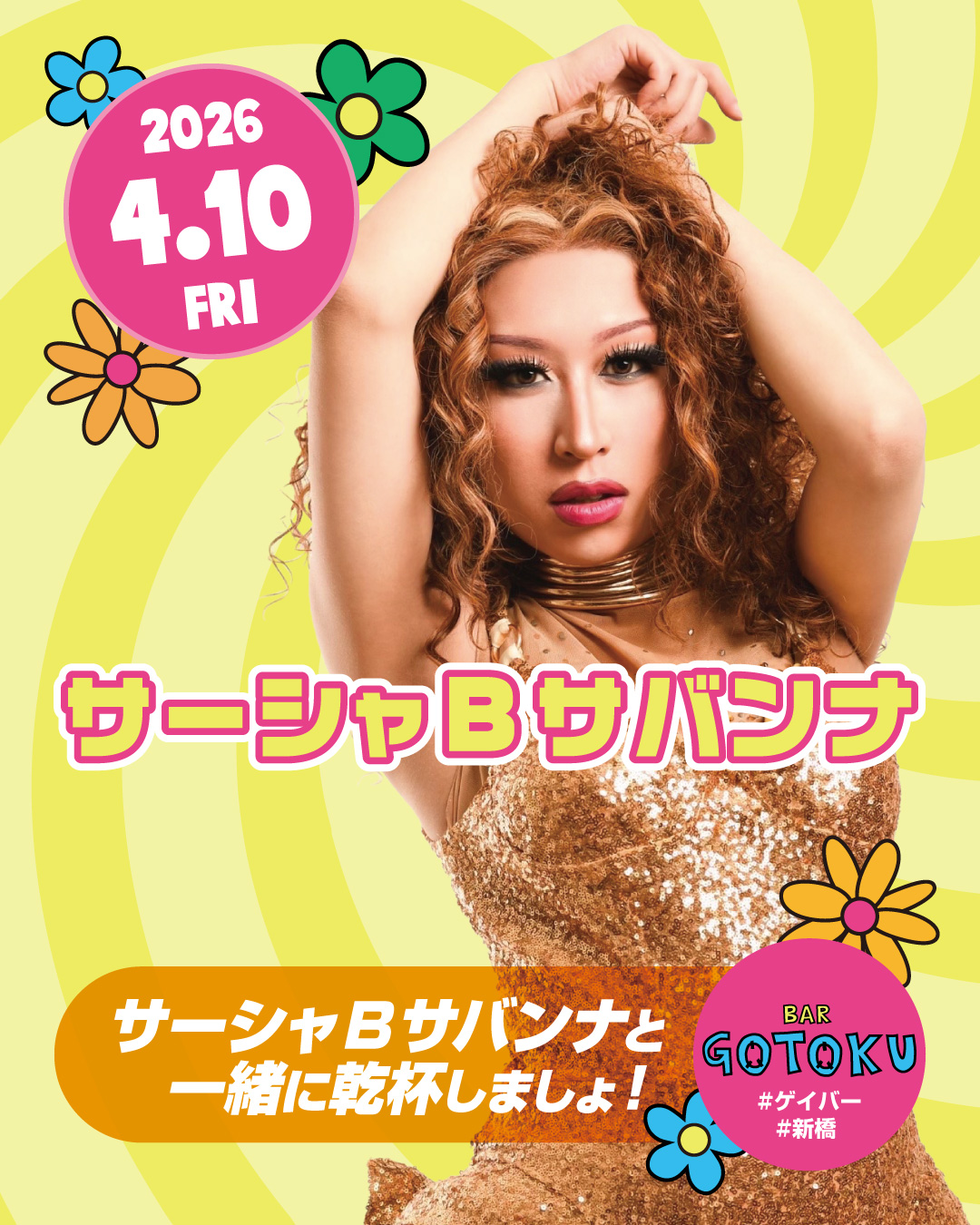 Queen’s Day2026年4月10日はドラァグクイーンのサーシャ B サバンナさんと一緒に乾杯しましょう!#bar5109#新橋MIXバー -
